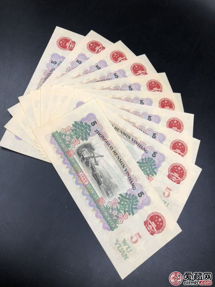据悉,因为第四套人民币停止兑换,最新收藏市场的行情特别火爆。第四套人民币刚开始行情确实很火爆,毕竟沉淀的时间还是比较短的,所以火爆一阵子以后又开始低迷下去了,而第二套人民币很多币种目前都是价值不菲,而且数量非常稀少,现在不仅仅流通量少,很多人也承担不起这笔收藏金额,所以目前行情热度居高不下的是第三套人民币,第三套人民币1960年5元人民币退市已经有一段时间了,但是因为第三套人民币是我国目前这几套人民币当中流通时间最长的一套纸币,而且也是我国独立自主设计印刷的,所以1960年5元人民币价格是很多人理解并且接受的。1960年5元人民币不仅仅收藏价值高,其存世量也是相对比较稀少的,毕竟退市有一段时间,随着岁月的消耗以及流通中的磨损,存世量减少,1960年5元人民币价格自然上涨。