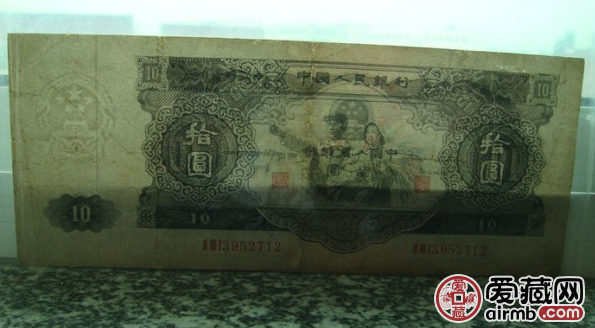 大黑十发行于1953年,其正面左侧是国徽形状的固定水印;四周尤其左边部分是较宽的白边,又称“大白边”。53年大黑十的制造工艺非常精致,可以发现它的人物和水印都是十分清晰的,而且手感非常不错,凹凸感很强,这是其它的币种所不能比的。至今为止,这张珍贵的纸钞并没有发现任何暗记,但其珍稀性足以彰显出这张人民币的珍贵性。目前在收藏市场上大黑大的价钱在4万-15万元左右,是名副其实的第二套人民币中“钞王”。