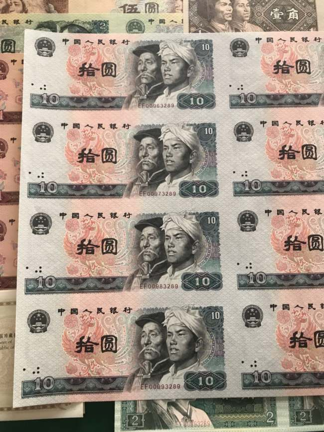 第四套人民币长城八连体珍藏册是2001年由人民银行授权中国长城硬币投资有限公司发行,包括1980版:10元八连体、5元八连体、2元八连体、1元八连体、5角八连体、2角八连体、1角八连体,一共七张八连体,装祯发行量仅10万册。总面值:150.4元。