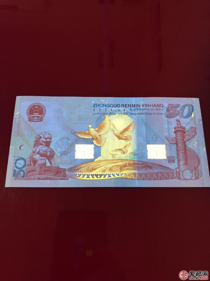 一,将票面进行左右倾斜可以看到在票面的左边会出现多个“50”,不仅如此,我们还可以看到天安门城楼大小的变化,这是动态的图案,防伪功能在这里体现的淋漓尽致,钞票的主景是以雕刻形式,所以我们触摸时能够感受到景色的凹凸感很强,欣赏价值也极高,这套纪念钞有多达十几种的防伪特征。