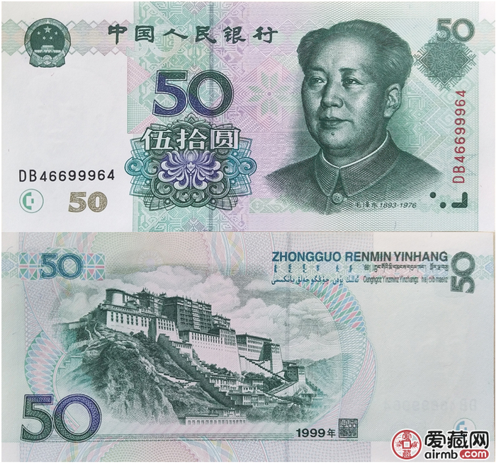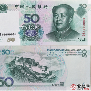 这枚第五套人民币50元纸币之所以很受欢迎,很大原因是因为99年版人民币存在问题,央行在2005年就对其进行了彻底的回收,并重新发行了2005年版的第五套人民币,这使得这版人民币的收藏价值增加。大家可以翻开随身的纸币看一下,基本现在的50元面额的人民币都是2005版的,所以这一枚99版的50元就显得弥足珍贵了。同时,在99版纸币中,9950的发行量几乎可以说是最少的。相比995、9910、9920、99100各自的107、201、104、402种冠号种类来说,9950的冠号仅仅只有78种,是发行量最少的。