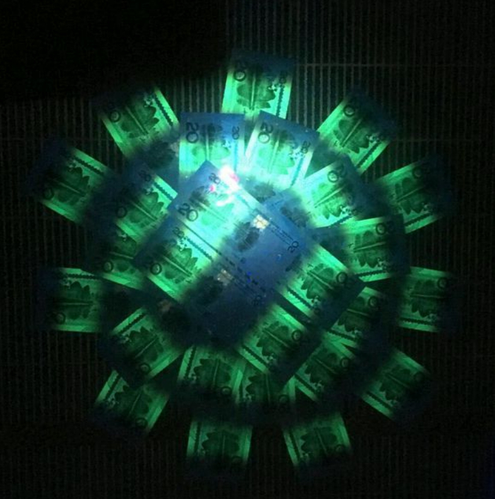 五版币最强荧光,99年20元“黄金叶”,FA小开门