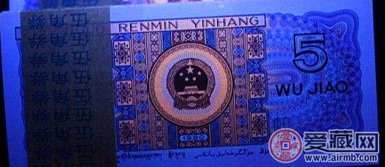 两边荧光图片(国徽无荧光,国徽两侧呈粉红色荧光)