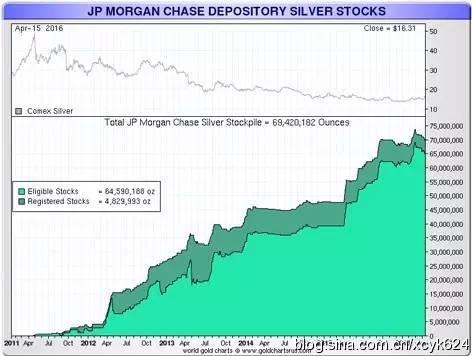 根据2017年4月份的报告,刚才提到COMEX总共6156吨白银库存中,有3300吨都属于摩根大通的