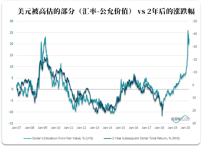 若历史走势可以参考,美元公允价值与美元表现之间确实存在紧密的历史关联,那么在未来两年中,美元的定价将下跌超过30%。