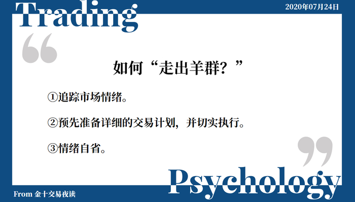 当然,这里并不是提倡你做逆势单,除非你是索罗斯和巴菲特,否则不要轻易逆势做单。这里是为了提醒大家,在市场一片狂热的时候,要尽量保持清醒,避免深陷行情、落入羊群陷阱。以下支出三招: