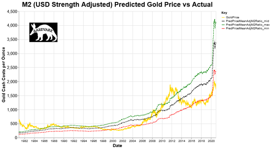他认为,黄金作为一种价值储存手段和货币,它的价值应该与货币供应和美元的走势密切相关。
