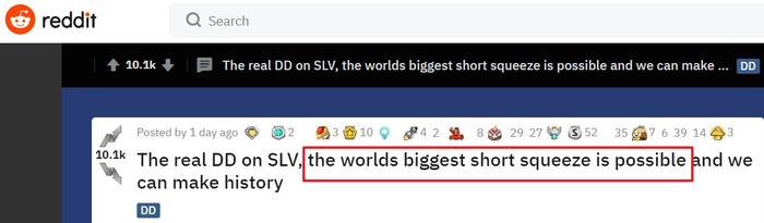 近日Reddit上又出现了一个热帖,散户们似乎蠢蠢欲动,把目标又瞄准了期货市场,这一次是白银ETF-iShares Silver Trust(SLV)。该帖号召散户通过做多SLV对白银空头进行挤压。