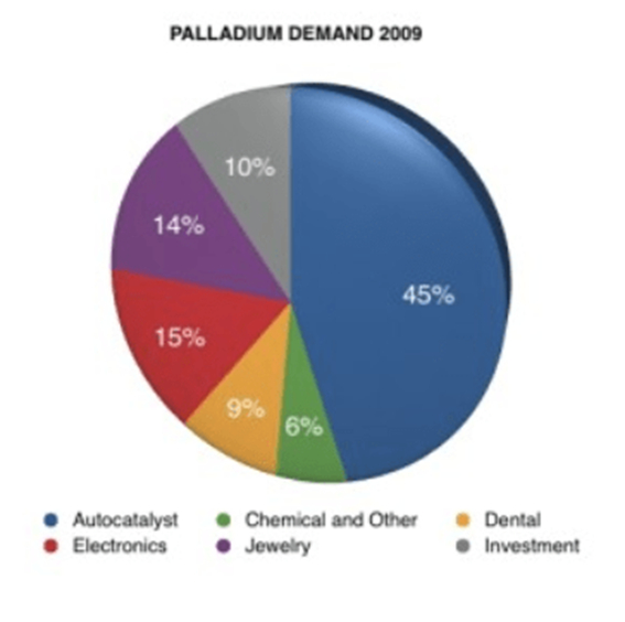 钯金是一种高价值的稀有金属,可以用来生产催化转换器、飞机火花塞、手术器械和电触点。但钯金最普遍的用途是用于汽车行业的催化转换器。