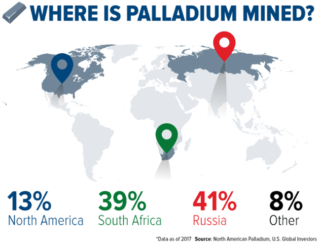 有趣的是,大约80%的钯是在俄罗斯和南非开采的。因此,这些国家的任何停产都可能导致钯金的大规模短缺。