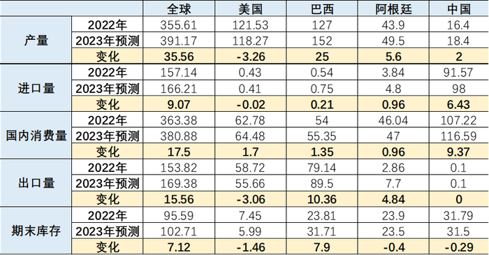 中国需求方面,2023年中国疫情政策彻底告别“清零”,经济有望回暖,同时叠加生猪补栏周期带来的养殖需求增量,预计需求稳中有增。