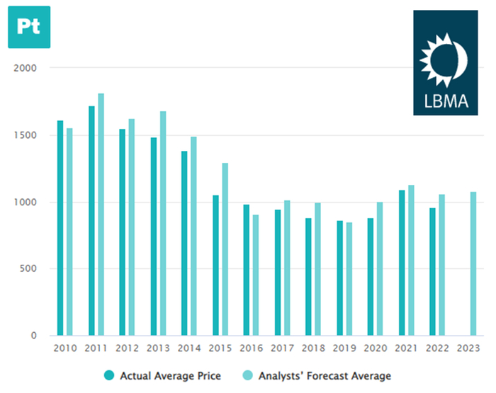 行业观点 | 伦敦贵金属协会预测2023年铂金价格看涨,钯金看跌