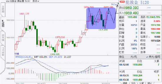 从国际黄金目前的图表技术走势来看,如果接下来市场出现上述情景,国际黄金价格则可能会在当前高位走出深度下跌调整至1805美元以下,最终走出金价季度线周期头肩底形态推动金价后市急速大幅进一步走高。