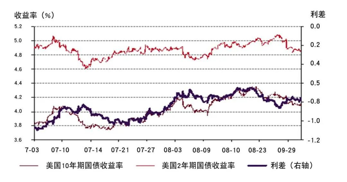 *计算基于2023年7月3日至2023年8月31日的数据。美国10年期和2年期国债收益率以及10年期减2年期的收益率利差。
