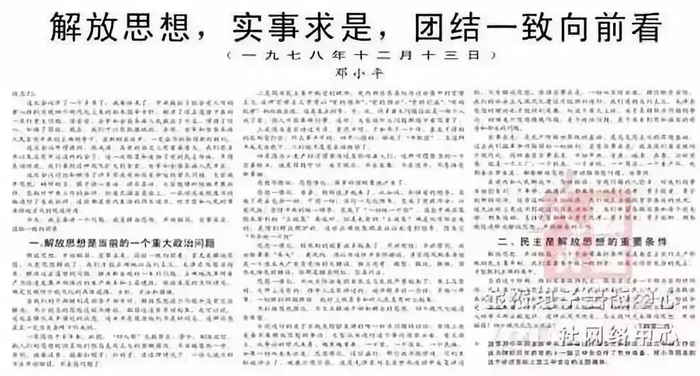 40多年前,1978年12月13日,邓小平在中央工作会议闭幕会上发表讲话《解放思想,实事求是,团结一致向前看》,这被称作“实际上是十一届三中全会的主题报告”。