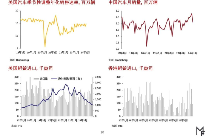 为反映迄今铂价表现较弱,我们已下调2024年一季度的铂价预测均值(具体价格预测请与我们联系订阅)。