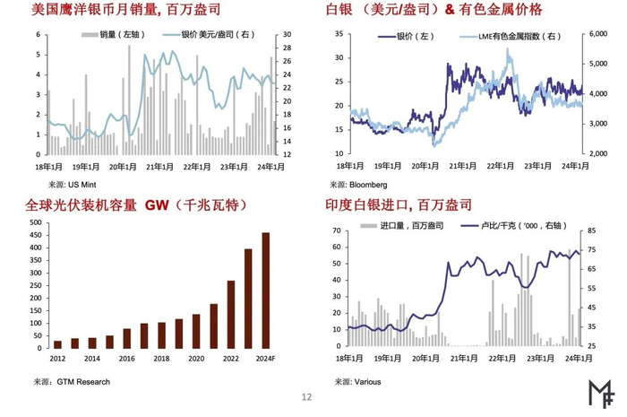 ▶就西方国家白银投资状况而言,2月份美国白银零售投资需求仍较为疲软。2023年结存的库存数量高企继续抑制各类实物白银产品的溢价。近期我们赴德国和瑞士实地调研结果证实欧洲白银零售投资需求仍极为疲弱。