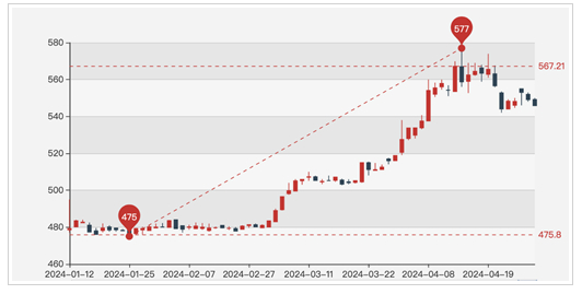 今年3月以来,黄金价格一路狂飙,从年初最低价475元/克直奔600元/克而去,4月中旬触顶后开始波动下降。