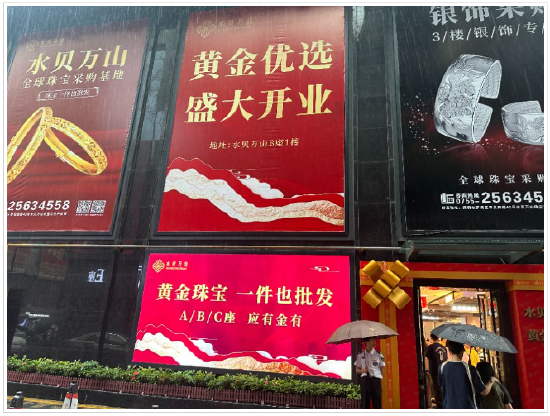 李强的店铺位于水贝万山其中一座商场的一楼电梯处,一下午都冷冷清清,很少有顾客驻足,“这次五一又赶上下雨,顾客都不如以往(金价上涨以前)周末人多。”