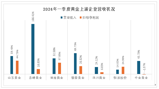 这一轮金价上涨的赢家还有黄金上游产业链的“掘金者”。多家主营黄金开采、冶炼业务的企业一季度财报披露,其归母净利润涨幅喜人。我国黄金产业链上游的头部企业山东黄金、湖南黄金、银泰黄金等企业归母净利润增幅超5成,赤峰黄金归母净利润暴涨166.41%。