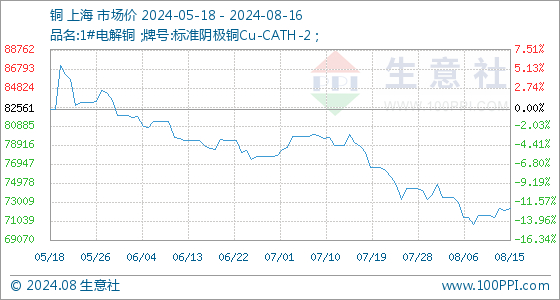 8月16日,生意社基准价为72376.67元/吨,与本月初(73756.67元/吨)相比,下降了-1.87%。