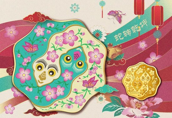 这枚1公斤梅花形金币别具一格,既保留了传统文化的韵味,又添加了现代审美的意趣。梅花的形制与桃花的图案放在一起,便有了“梅花开尽又桃花”的氛围感,如今虽是寒冬,但春的脚步已然不远了。借助这枚双蛇币,祝福大家在即将到来的乙巳蛇年,都能拥有幸福可期、蛇转乾坤的美好生活!