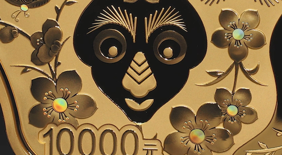 此外,这枚币的面额标注也十分讲究,“10000元”的文字都有随字形的轮廓线包围,也巧妙的与图案相融合,丝毫没有打破和谐之美。
