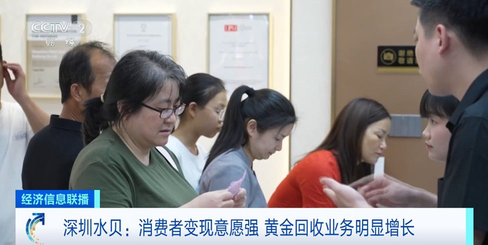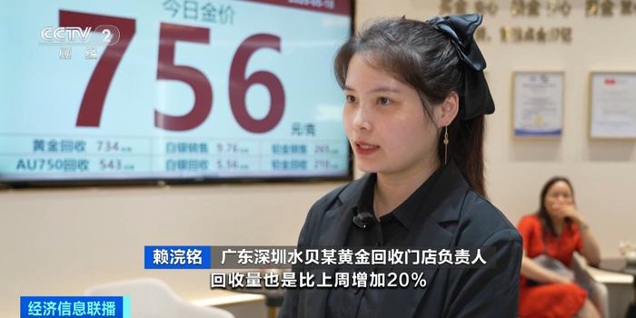 广东深圳水贝某黄金回收门店负责人 赖浣铭:这周的客流量比上周增加20%,回收量也比上周增加20%,每天都有几公斤黄金回收。回收的品类中首饰占比较大,金条偏少数。