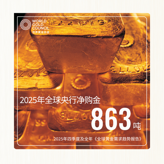 2025年四季度,全球央行净购金230吨,环比涨幅6%;全年,全球央行购金需求依然保持高位,官方机构增持863吨黄金。
