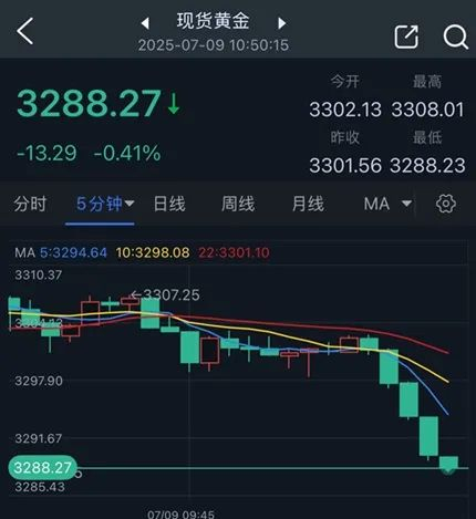 黄金短线突然急跌!金价刚刚跌破3290美元