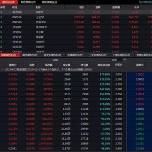 在股市大涨带动下,今日50ETF看涨期权普遍出现了大幅上涨。其中,2月看涨合约中部分品种涨幅惊人,50ETF购2月2750合约上涨10475%,50ETF购2月2800合约涨幅更是高达19266.67%。