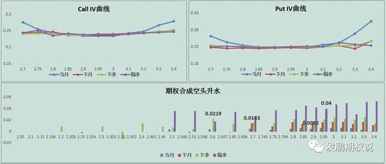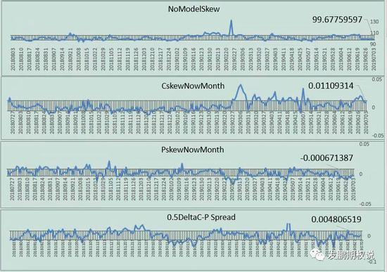 3.    平值C-P隐波差即平值Call隐波-Put隐波,正意味着Call相对更贵(一般会对应合成升水),反之则反过来。