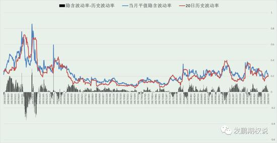 关于隐含波动率与实际波动率(简单历史波动率)的关系,先放一个张图: