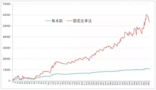 图2 基本款的盈利走势:固定比率法VS无资金管理