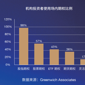 A:2018年Greenwich Associates调研报告显示,机构投资者使用场内期权的主要类别包括股指期权、股票期权、ETF期权、期货期权和灵活期权。其中,98%的机构投资者选择使用股指期权,这主要得益于股指期权更好的流动性、更窄的价差和更低的交易成本。