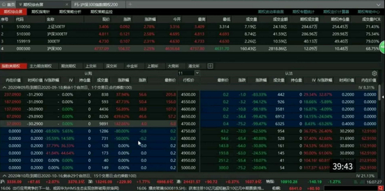 9月22日,上午10:30,沪深300ETF期权(510300)9月份合约T型报价图