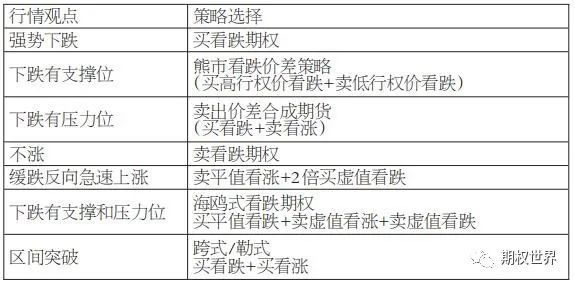 图为三个维度的行情看法以及对应的期权策略