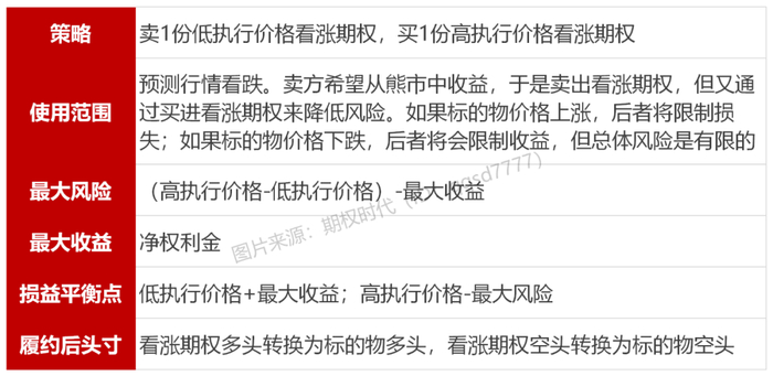 之所以被称为“垂直套利”,是因为本策略除执行价格为其余都是相同的,而执行价格和对应的权利金在期权行情表上是垂直排列的。