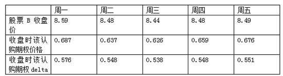 表1:股票B收盘价和delta