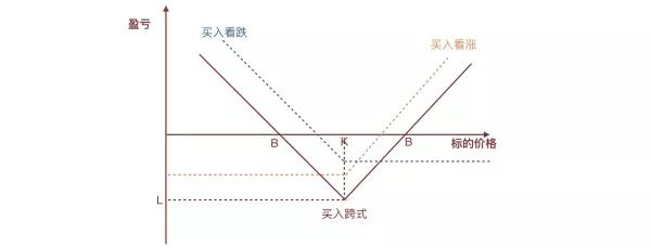 该策略到期时的盈亏平衡点主要有两个:一个是行权价加上买入两个期权所支付的权利金之和,另一个是行权价减去买入两个期权所支付的权利金之和。