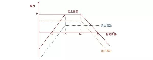 卖出宽跨式策略和卖出跨式策略有些类似,只不过卖出跨式策略卖出的平值看涨和看跌期权,而卖出宽跨式策略卖出的是虚值看涨和看跌期权,卖出看涨期权的行权价高于卖出看跌期权的行权价。