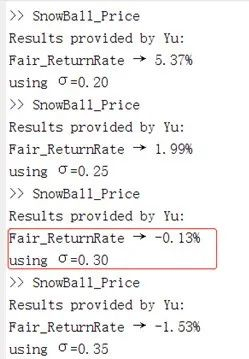 然而,雪球真正的公平收益是多少?答案:很可能为负收益!下面为一张雪球产品的定价相关结果截图: