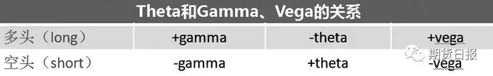 表为Theta和Gamma、Vega的关系