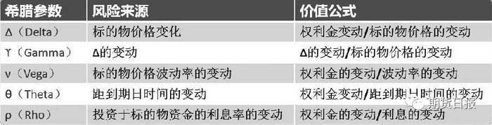 表为期权风险指标中的希腊参数