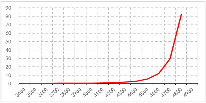 图表4 2020年7月6日沪深300不同行权价格看涨期权权利金上涨倍数