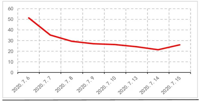 如果你认为标的价格的涨幅很大,那么可以选择较为虚值的看涨期权,虽然较虚值的看涨期权Delta较小,但是如果涨幅能逐渐逼近或超过虚值看涨期权的行权价格,那么Gamma会逐渐放大,并加速虚值期权的上涨幅度,可以参考最近2020年7月6日股票市场的一波行情,如下图4所示。