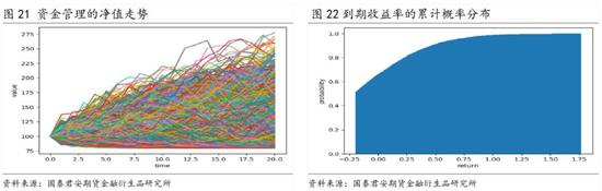 图21-图22展示了使用资金管理的收益特征(假设是组合初期资产为100元,20%资金买入平值看涨,并持有到期,剩余资金配置无风险资产):