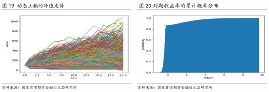 图19-图20展示了动态操作中最常见的止损的收益特征(假设是组合初期资产为100元,全部买入平值看涨,日收盘若组合净值低于80元则平仓,并且之后不再开仓):