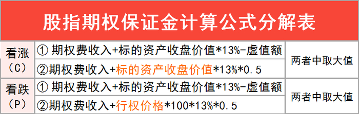看跌期权:每手看跌期权交易保证金=合约当日结算价×合约乘数+max(标的指数当日收盘价×合约乘数×合约保证金调整系数-虚值额,最低保障系数×合约行权价格×合约乘数×合约保证金调整系数)
