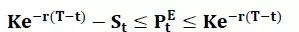 ▋左边的不等式 K*e^(-r(T-t))-S